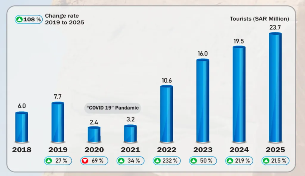 There was a time when Saudi Arabia’s cultural identity felt tucked away, known mostly through religious pilgrimages and historical footnotes. But that image has changed dramatically. Today, tourism diversification has led to a 108% increase in non-religious inbound travel, driving Saudi Cultural Tourism Growth and expanding global engagement with the Kingdom’s heritage.